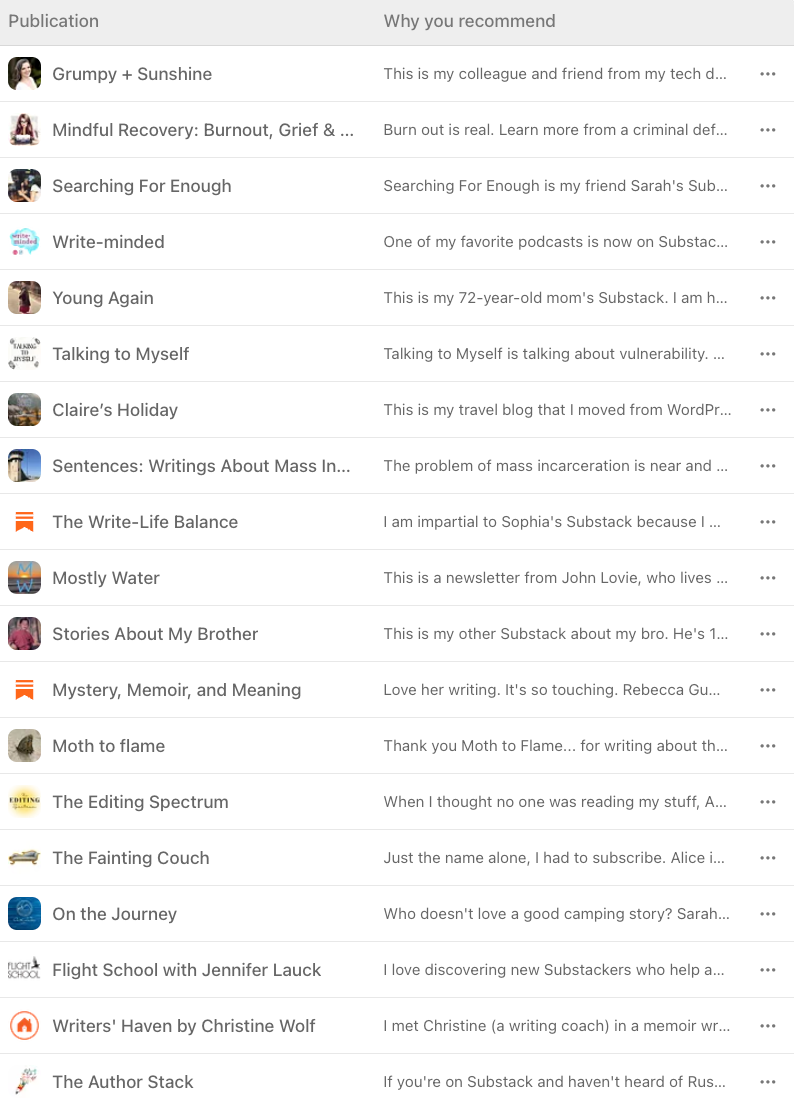 In my previous Lessons in Substack Year 2 post, I discussed setting up recommendations (scroll down to tip #4) to share other people’s Substacks. Just like turning on the paid subscription, just do it.