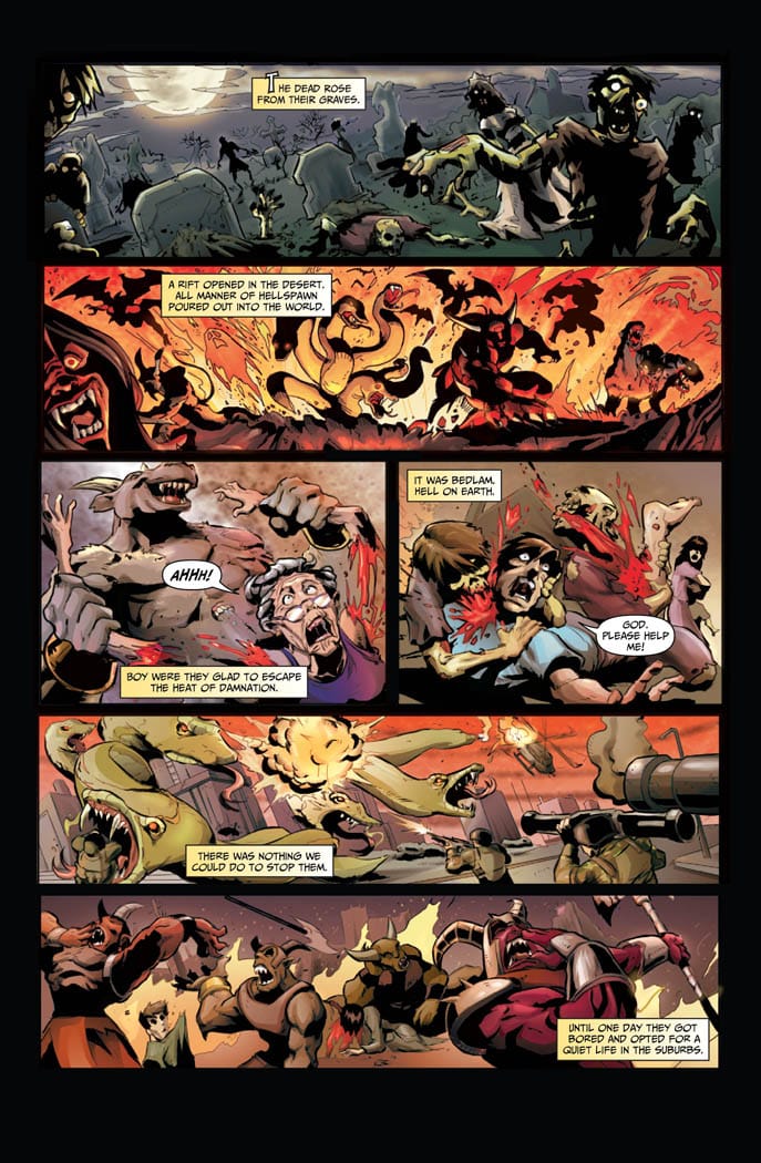 Hellspawn rose from Hell and rampaged across the world, eviscerating all they came across. It was bedlam, Hell on Earth. There was nothing anybody could do to stop it. Then the Hellspawn got bored and settled for a quiet life in the suburbs. They squatted in the homes of the people they once mercilessly murdered.