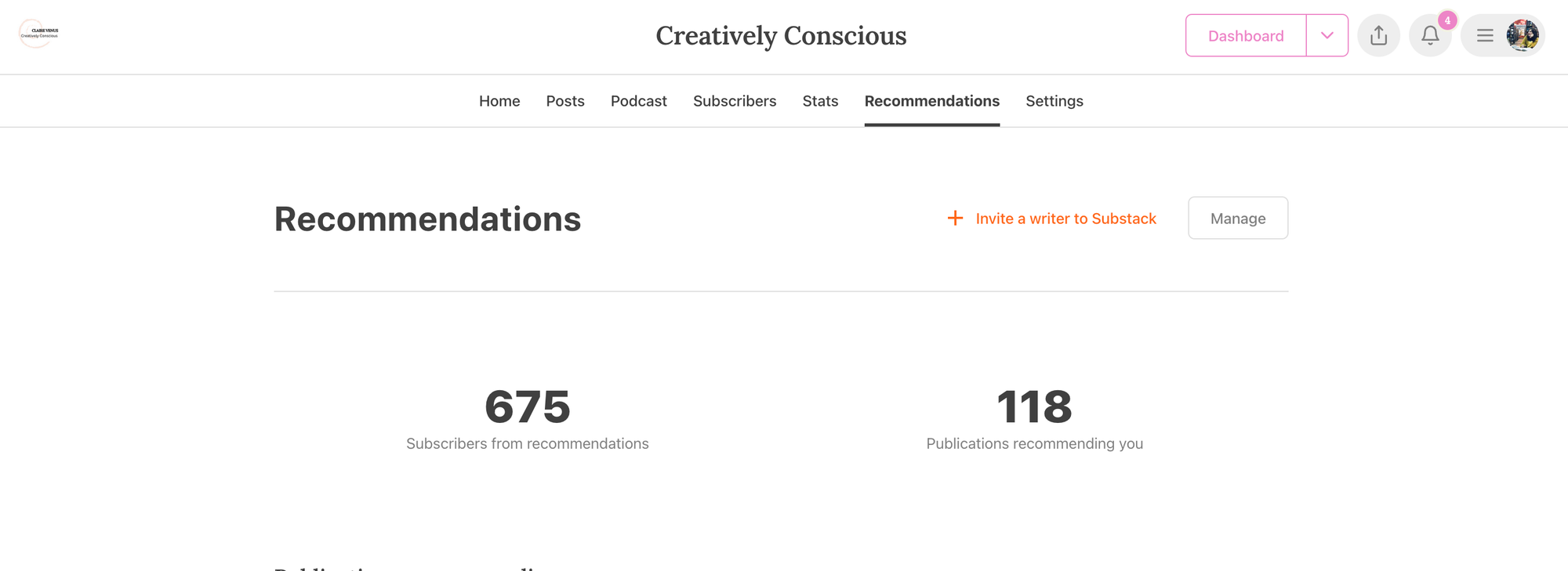 The thing you have to do here is to know that your readers are coming and that your supporters are ready… it just takes a little time. Shakespeare wasn’t an overnight success and you don’t have to be either but you do have to use the recommendations tool here on Substack!