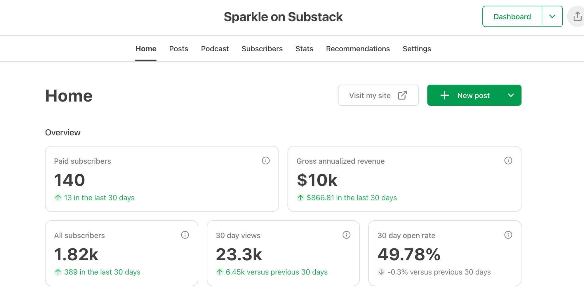 - December - celebrated steady growth of 500 subs a month across both publications (Sparkle x 400, Creatively Conscious x 100) for four months in a row. Almost at 4500 subscribers and 190 paid overall.🎉