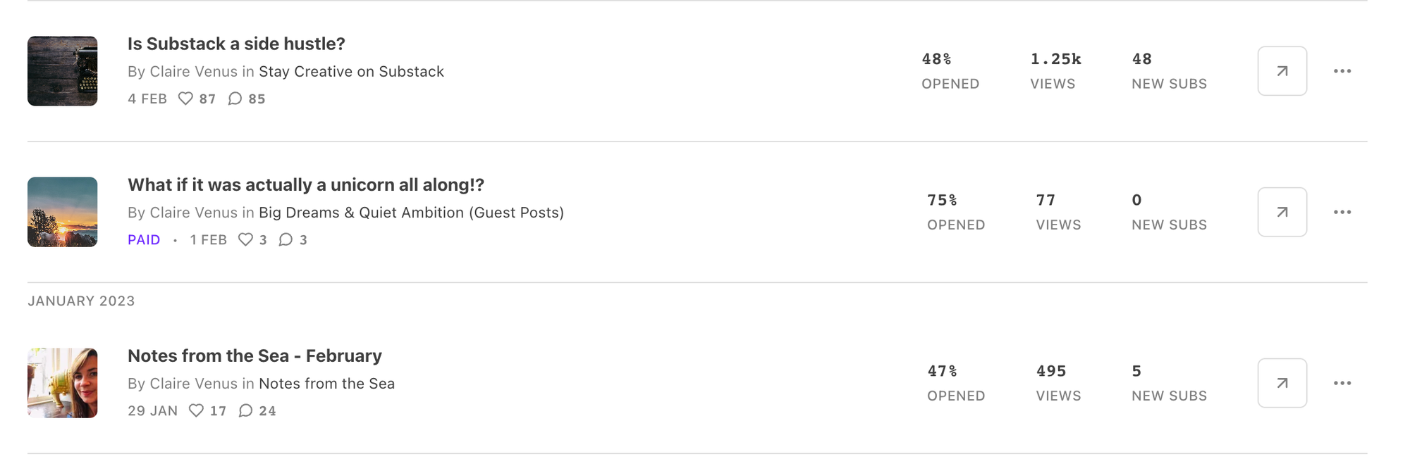 - Feb ‘23 - first viral post - ‘Is Substack a Side Hustle?’